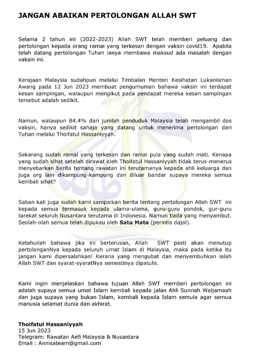 Telegram “Rawatan Aefi Malaysia & Nusantara”